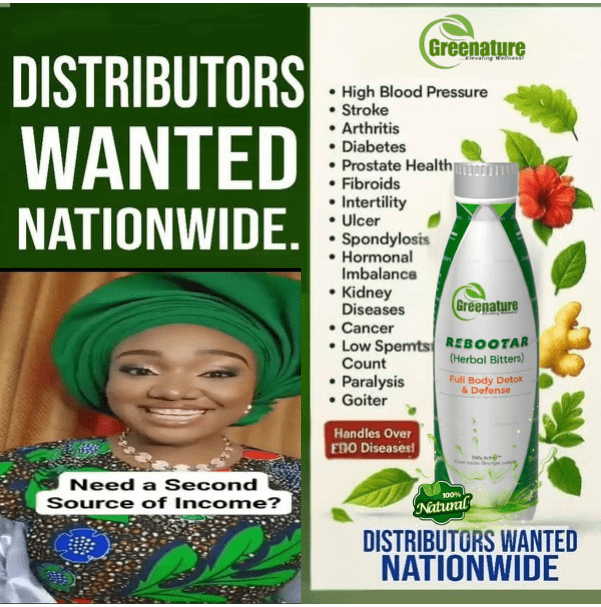 GREENATURE INTERNATIONAL HERBAL PRODUCT STARTED OFFICIALLY HERE IN NIGERIA AS A MULTI LEVEL MARKETING COMPANY IN NOVEMBER 2025 WITH THE FIRST FLAGSHIP PRODUCT CALLED REBOOTAR HERBAL BITTERS WITH LOTS OF HEALTH TESTIMONIES. YOU ALL REALLY NEED TO GET A BOTTLE FOR YOURSELVES.